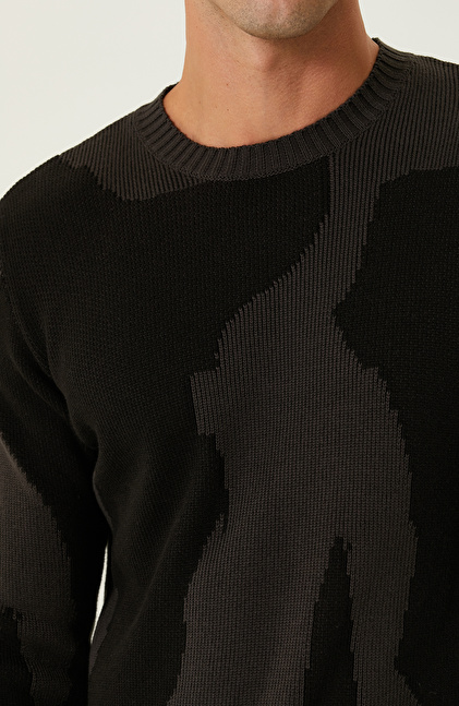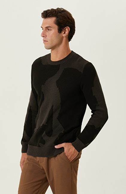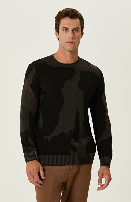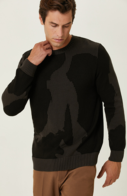 NetWork’ün yenilikçi tasarımı Siyah Kamuflaj Desenli Kazak, özgüveni yüksek şehirli erkeklerin kış aylarında favorileri arasındadır. Bisiklet yaka ve uzun kol detaylarına sahip triko tasarım, slim fit kalıbıyla bedeni konforlu bir şekilde sarar. Lüks trikonun akıllı ve yüksek performanslı dokusu, soğuk havalarda stil sahibi erkeklere ekstra konfor sunar. İlgi çekici tasarımda kullanılan kamuflaj desen, inovatif bir görünüm sergileyerek benzersiz kombinlere imza atmanızı sağlar. Zamansız moda anlayışını yansıtan model, her daim kendini genç ve dinamik hisseden cesur erkeklere hitap eder. Siz de bu iddialı tasarımı camel kumaş pantolon, camel kaban ve beyaz sneaker ile kombinleyebilir, kış stilinizi yansıtabilirsiniz.