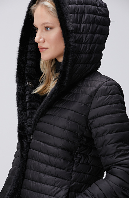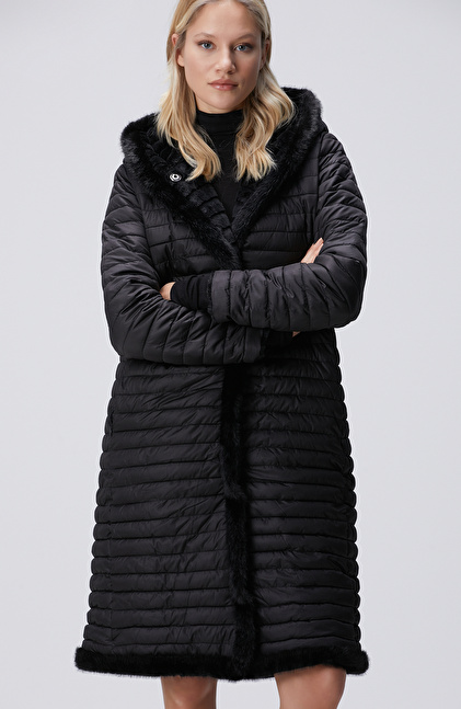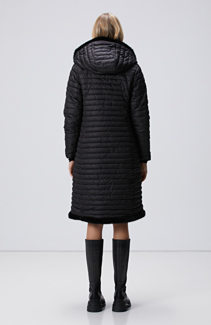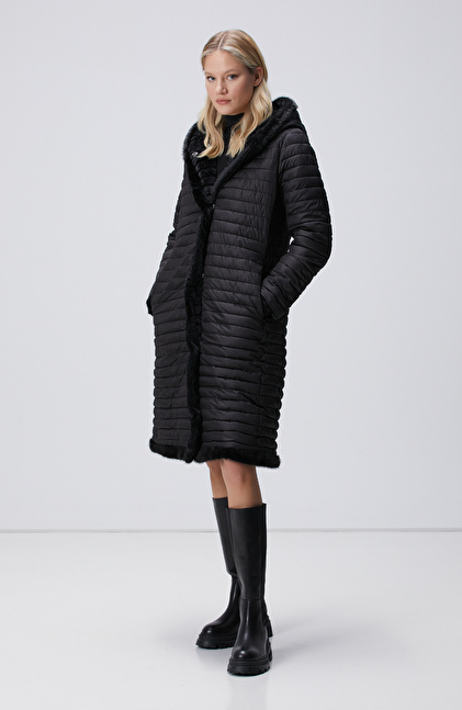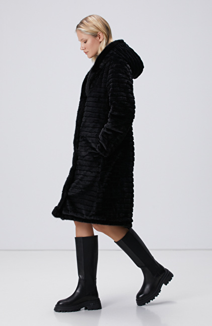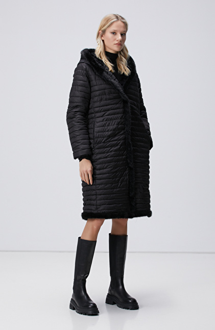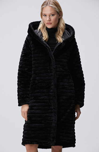 Siyah Kapüşonlu Çift Taraflı Kaban