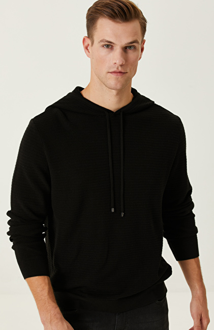 Basic tarza sahip şehirli erkeklere uygun tasarımıyla Siyah Kapüşonlu Kazak öne çıkar. Sonbahar/kış sezonunda kullanabileceğiniz kazak hem sizi sıcak tutar hem de tüm gün rahat etmenizi sağlar. Ayrıca kusursuz duruşu ile bu parça, kombinlerinize elegan bir dokunuş yapar ve kalitesiyle de dayanıklılık sunar. NetWork Special’ın lüks moda çizgisini yansıtan tasarımı ile model, basic tarzınızı sofistike bir şekilde yansıtmanızı sağlar. Bu kazağı, farklı parçalarla kombinleyebilir ve ister gün içinde ister sokak modasına uygun olarak kullanabilirsiniz. Kapüşonlu olduğundan fonksiyonel kullanım sağlayan siyah kazağı; siyah denim pantolon ve siyah sneaker ile kombinleyebilirsiniz.
