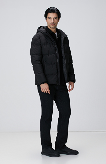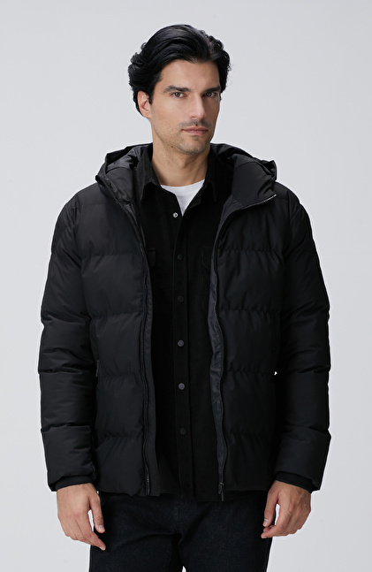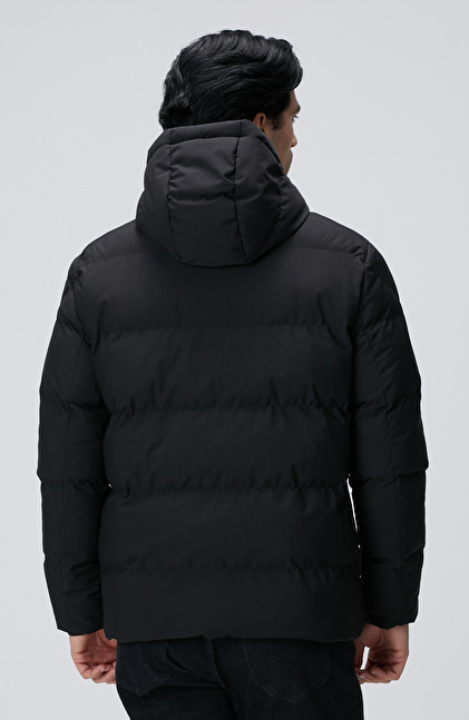 Siyah Kapüşonlu Puffer Mont