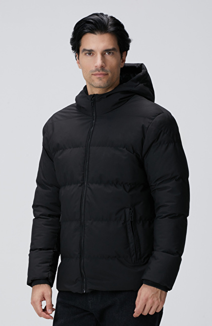 NETWORK Smart Casual Siyah Kapüşonlu Puffer Mont