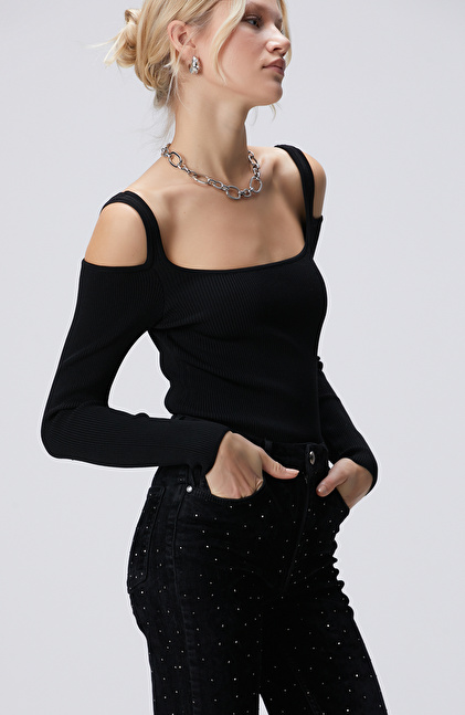 Slim Fit; Omuz Detaylı; Triko Kazak