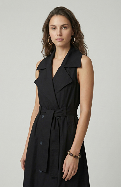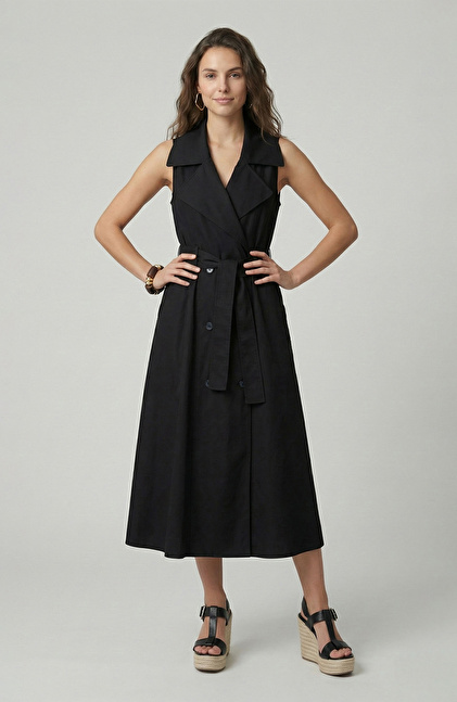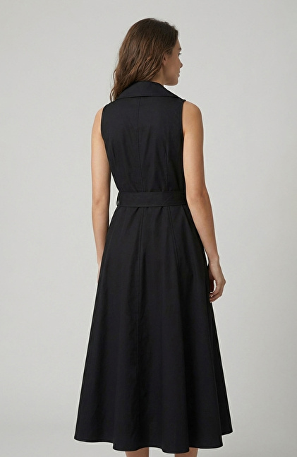Siyah Kemer Tokalı Kruvaze Elbise
