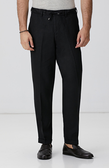Siyah Keten Jogger Pantolon