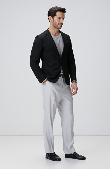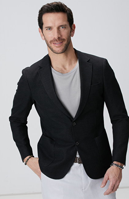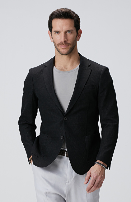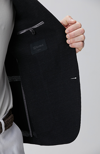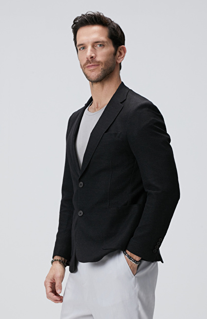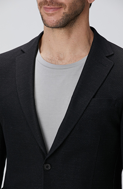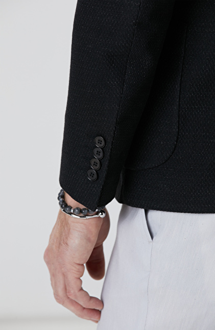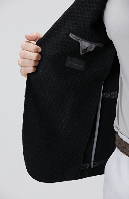 Siyah Keten Karışımlı Ceket
