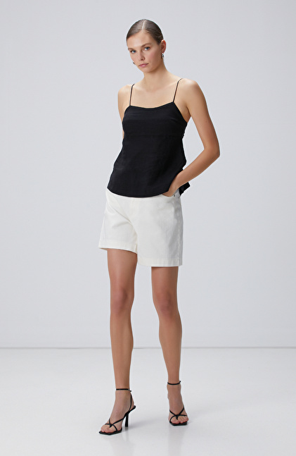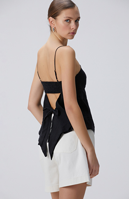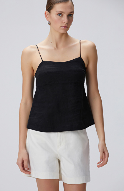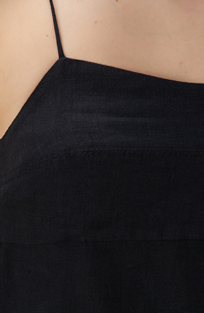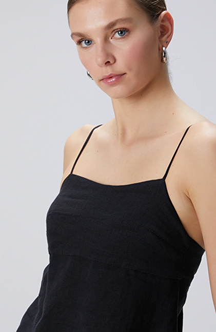 Siyah Keten Plaj Bluz