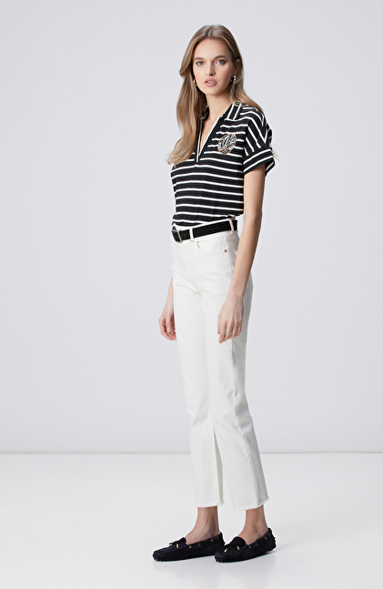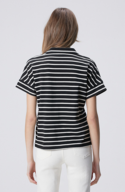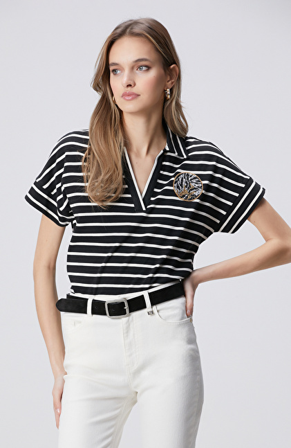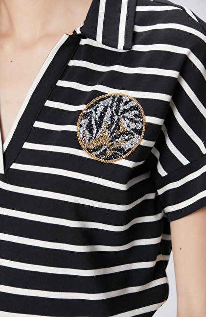 Siyah Kırık Beyaz Aksesuar Detaylı T-shirt