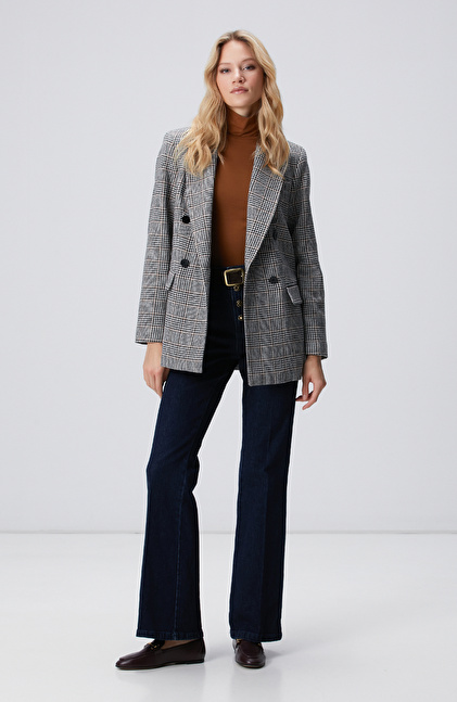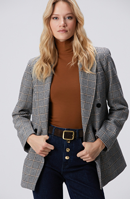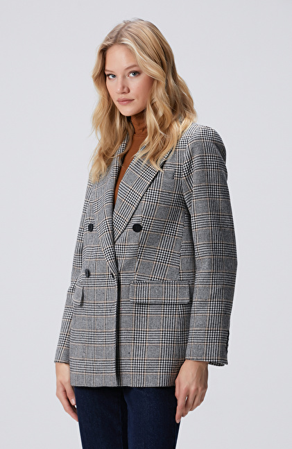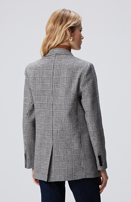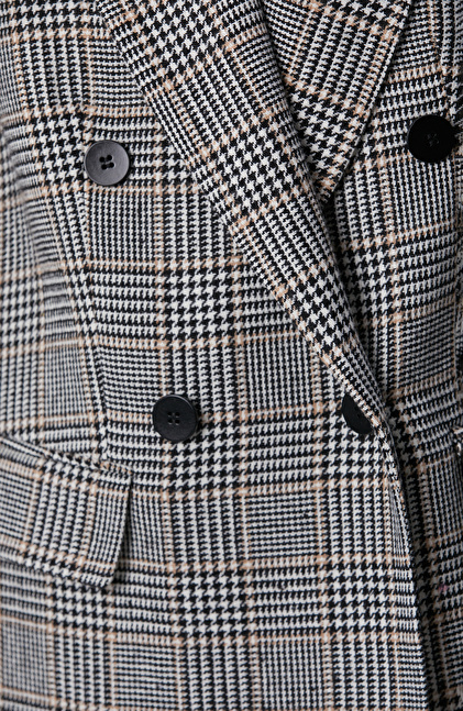 Siyah Kırık Beyaz Yün Karışımlı Ceket