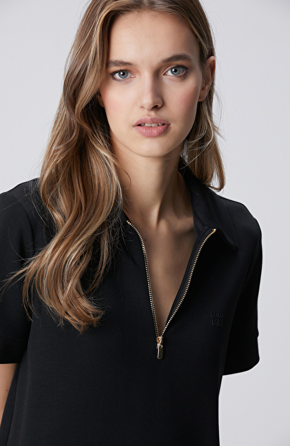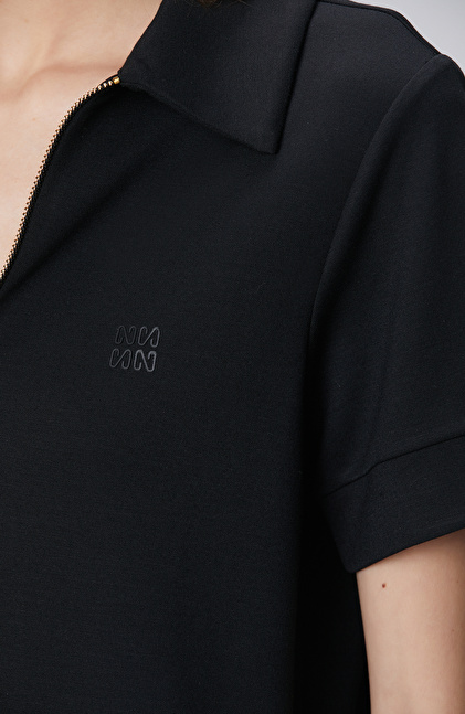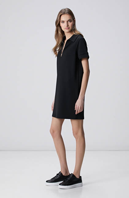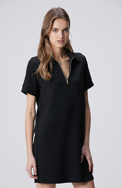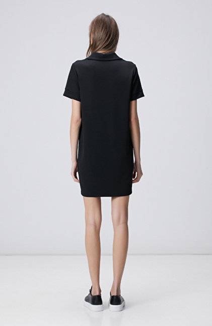 Siyah Kısa Kol Polo Yaka Mini Boy Örme Elbise