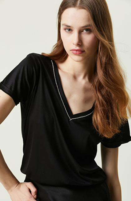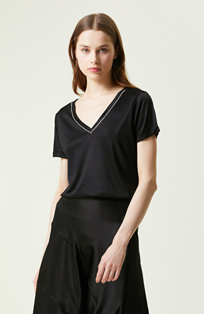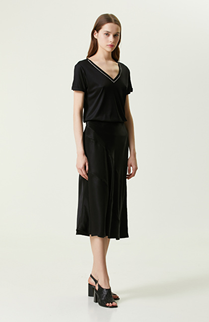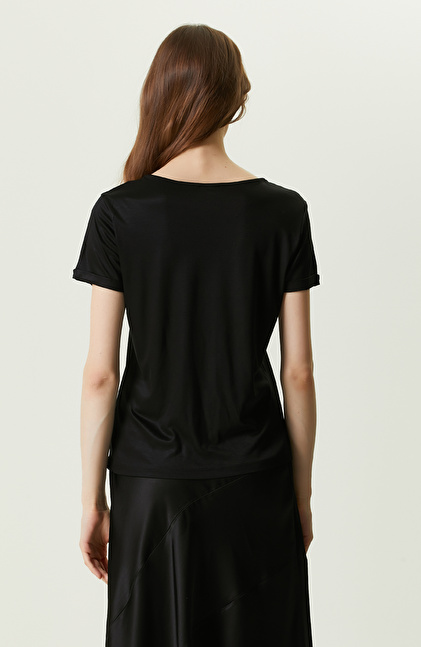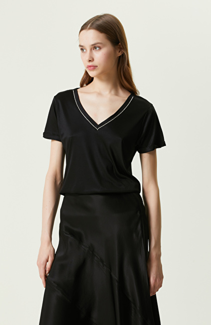 Siyah Kısa Kollu V Yaka T-shirt