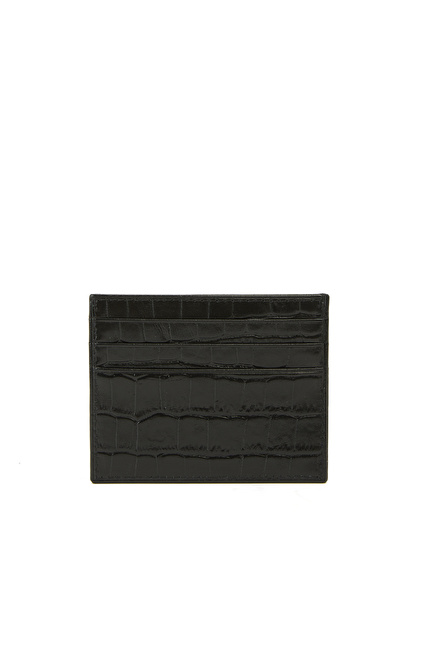 Siyah Kroko Baskılı Erkek Deri Kartlık