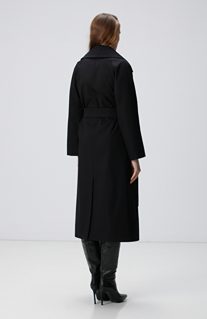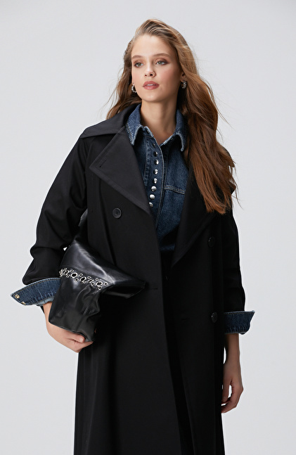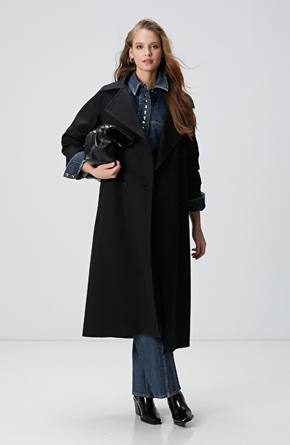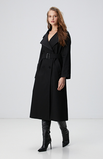 Siyah Kruvaze Trençkot