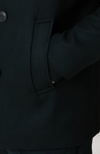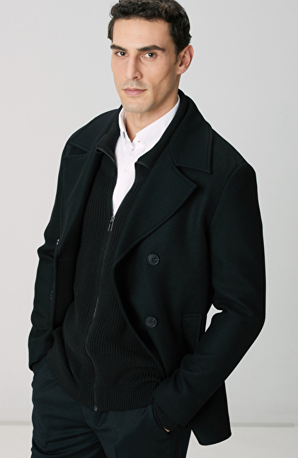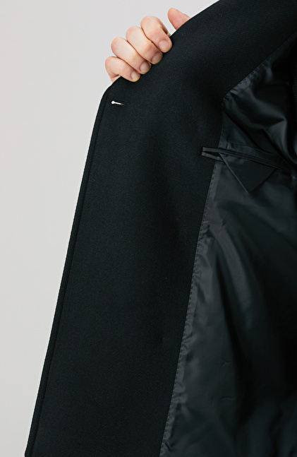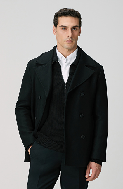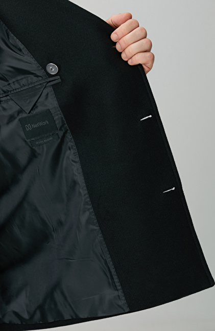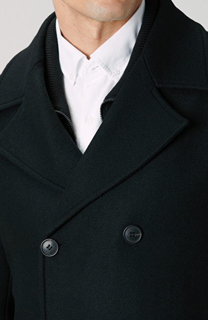 Siyah Kruvaze Yaka Diyagonal Kaban