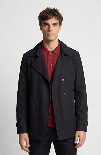 Siyah Kruvaze Yaka Pardösü