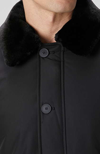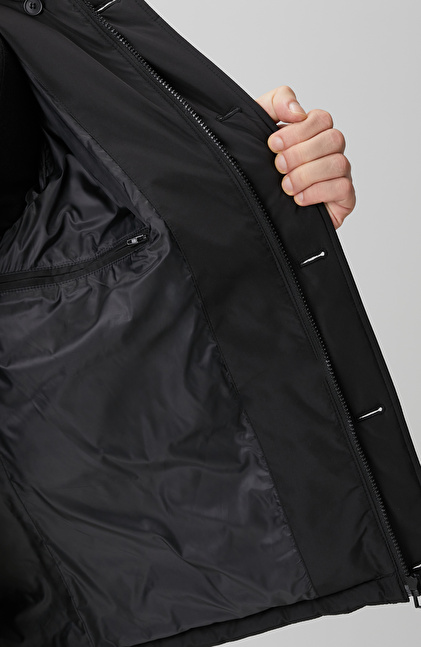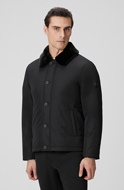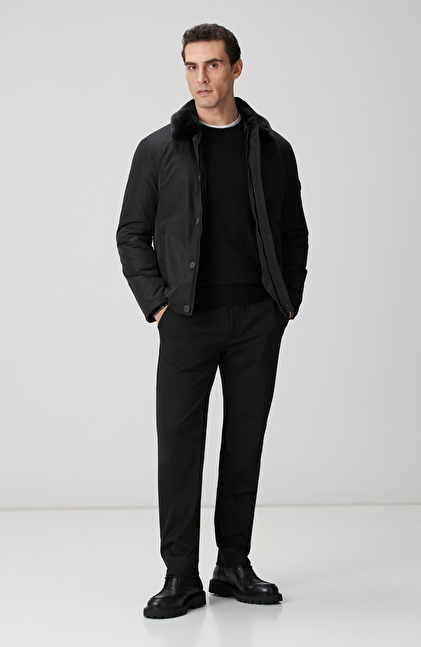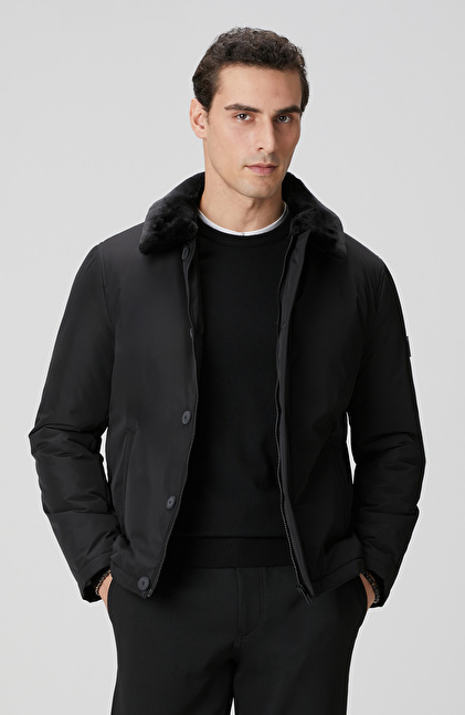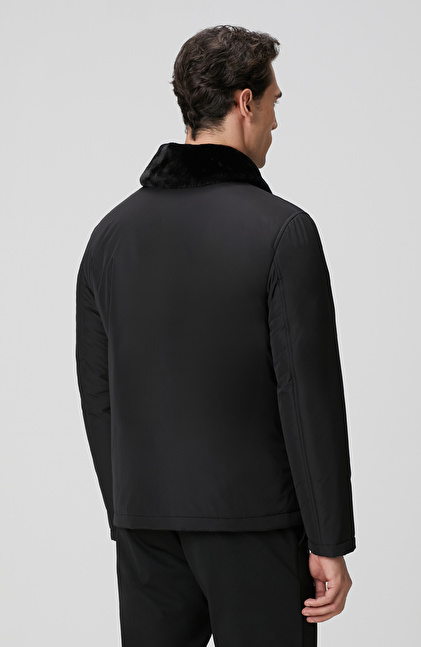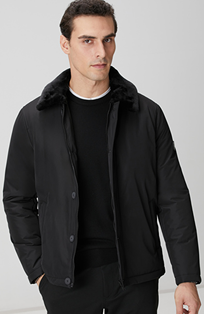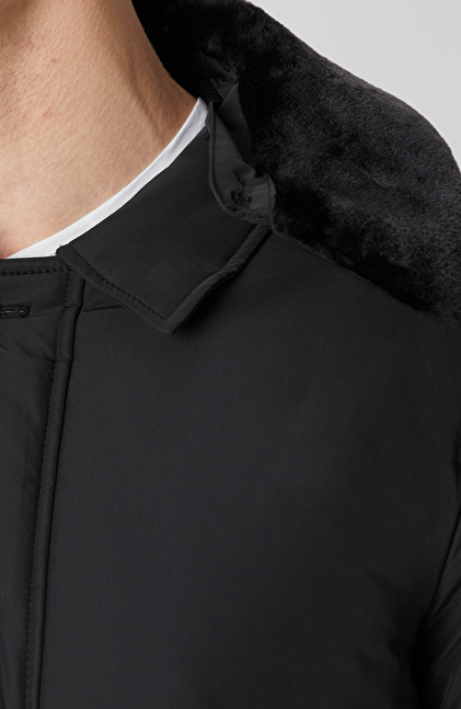 Slim Fit; Yakası Kürk Detaylı Mont; Uzun Kol; Cepli