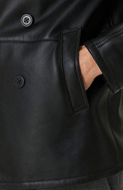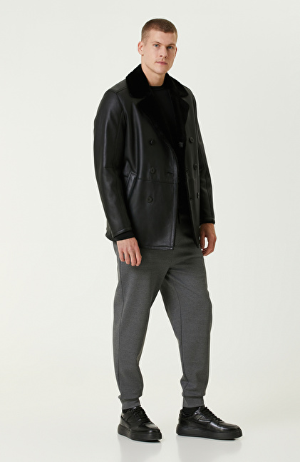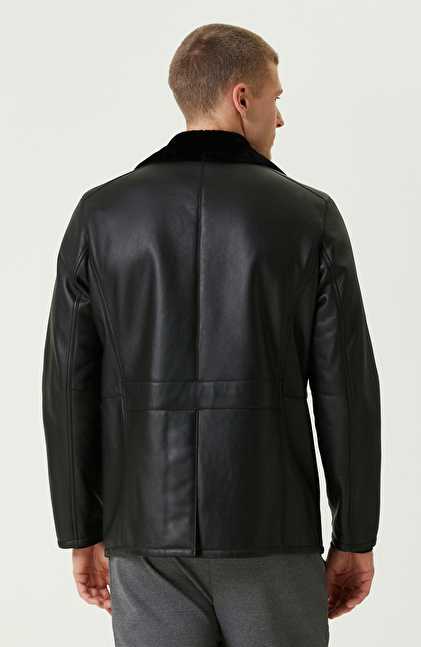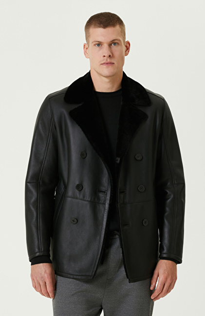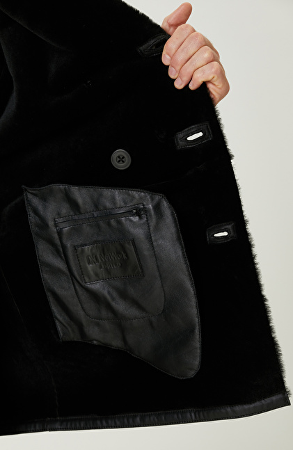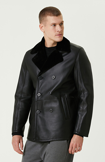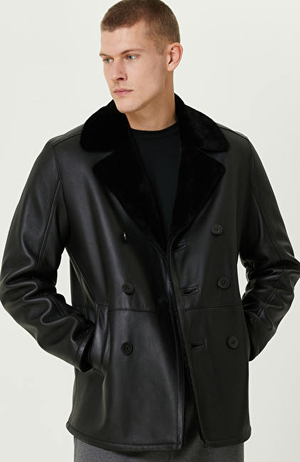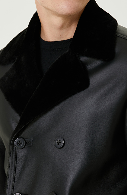 Siyah Limited Yakası Kürklü Kruvaze Deri Kaban