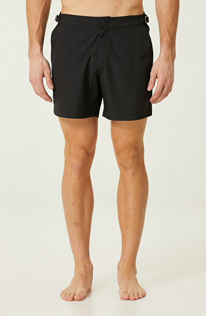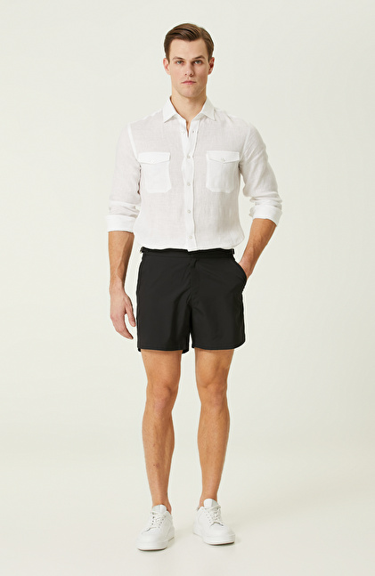 Slim Fit; Lastikli Orta Bel; Düz Paça; Dokuma Şort Mayo; Beli Tokalı; Yan Cepli