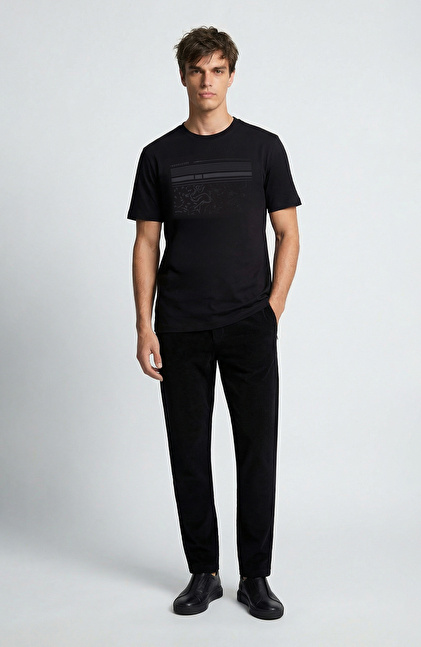 NETWORK Smart Casual Siyah Mermer Enjeksiyon Baskılı T-shirt