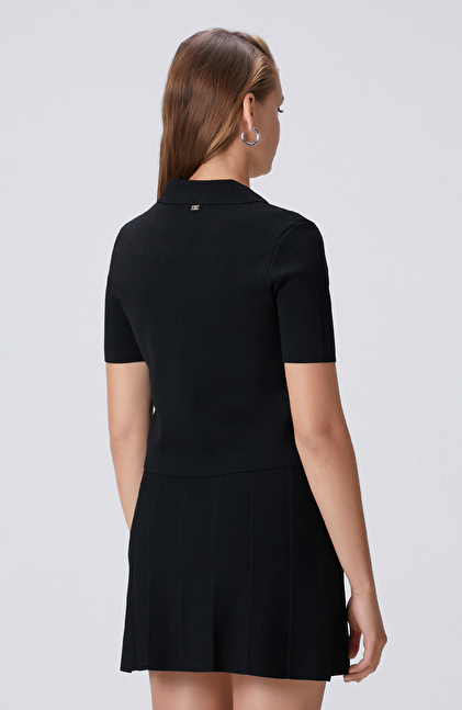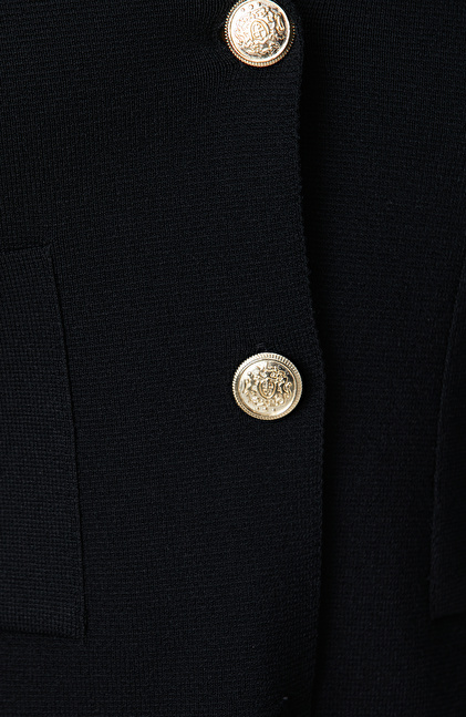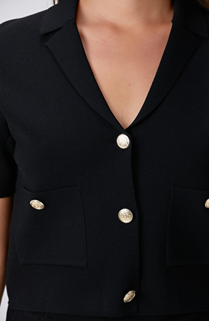 Siyah Metal Düğmeli Cepli Triko Ceket