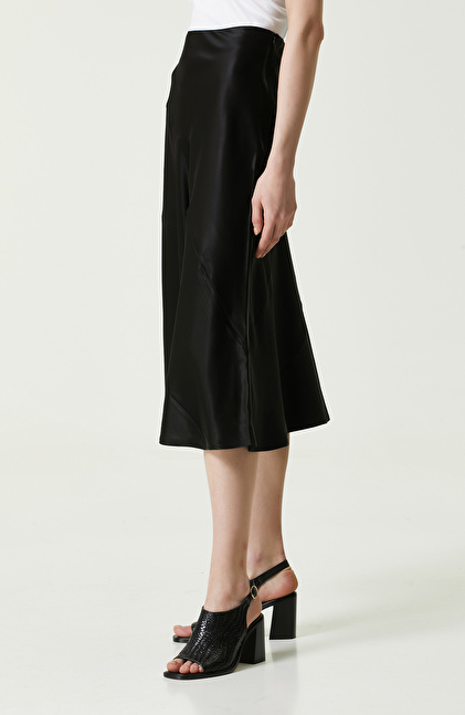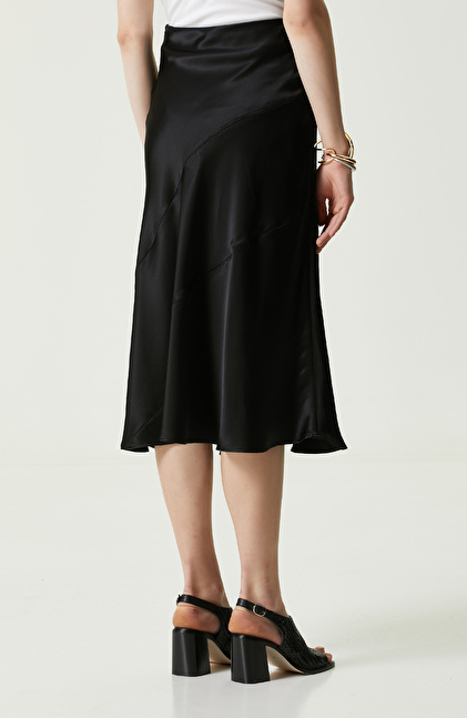Siyah Midi Boy Saten Etek