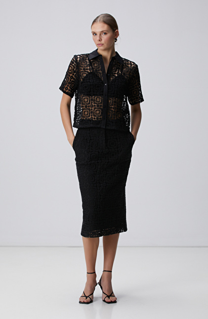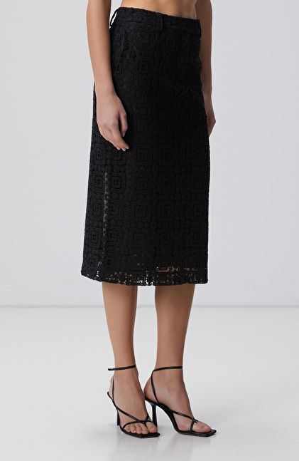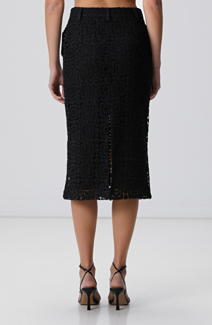 Siyah Midi Kroşe Kalem Etek