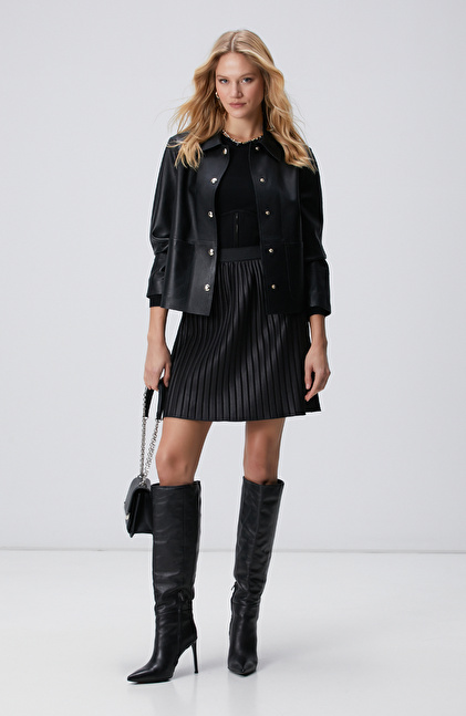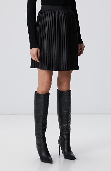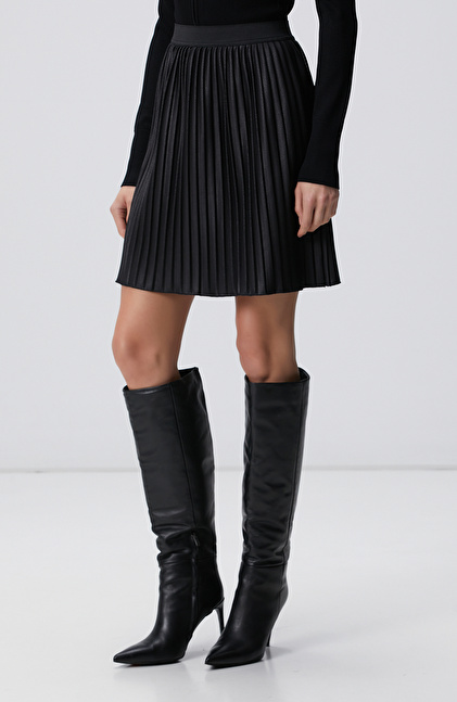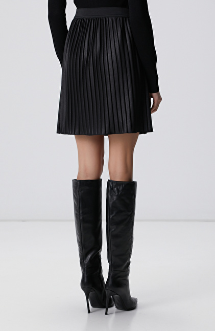 Siyah Mini Pileli Etek
