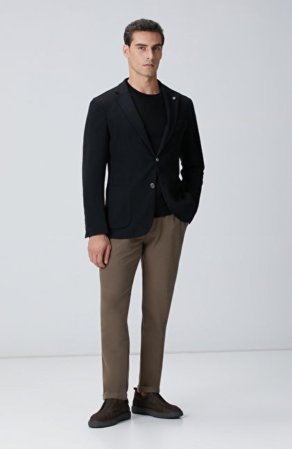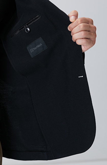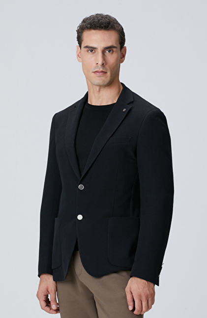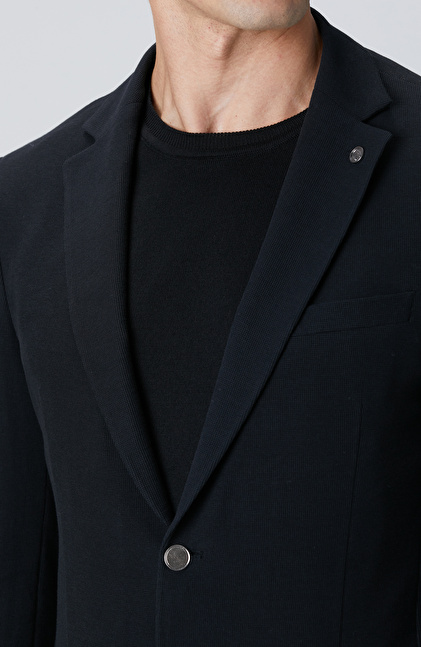 Siyah Mona Yaka Metal Düğmeli Örme Blazer Ceket