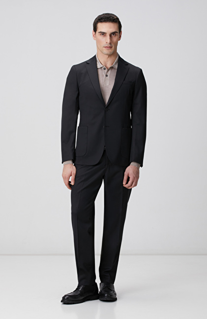 Siyah Mono Yaka Yün Mix Takım Elbise