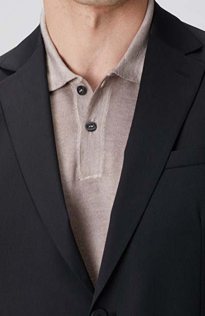 Slim Fit; Yün Takım Elbise; Ceket: Mono Yaka; Pantolon: Normal Bel; Düz Paça