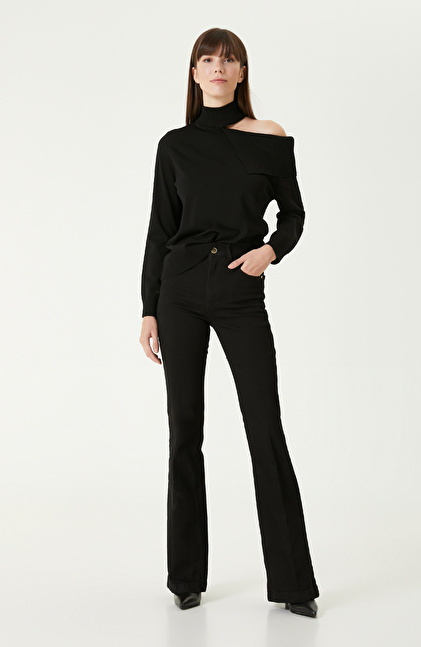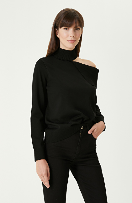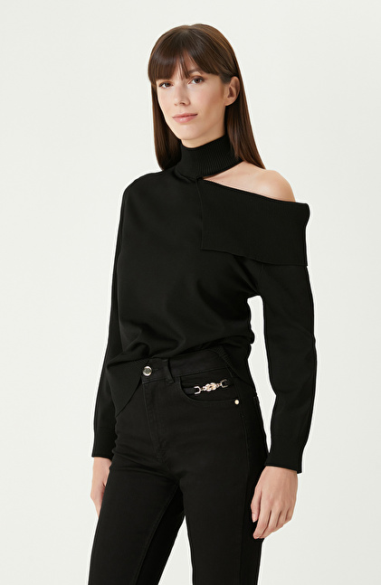 Siyah Omuz Detaylı Triko Kazak