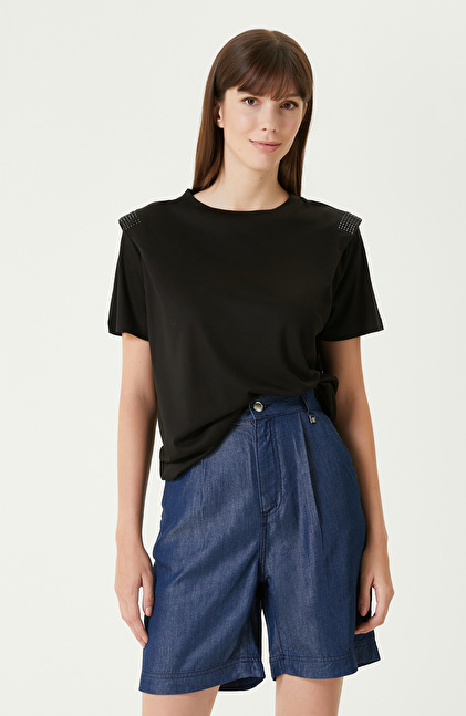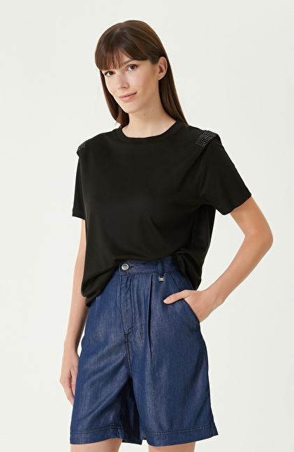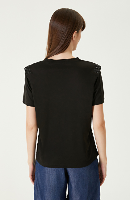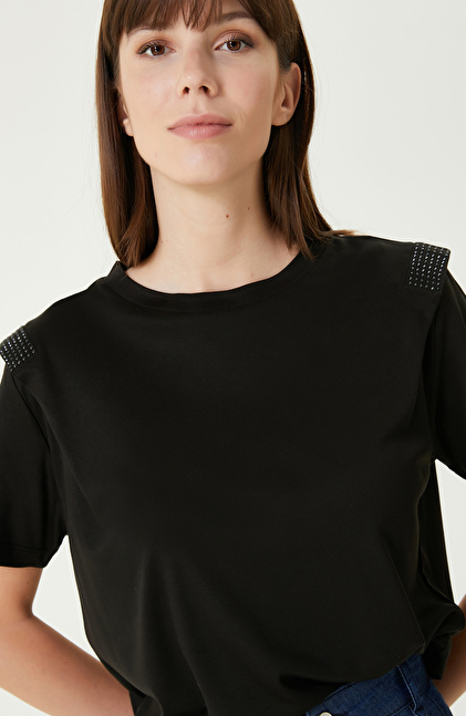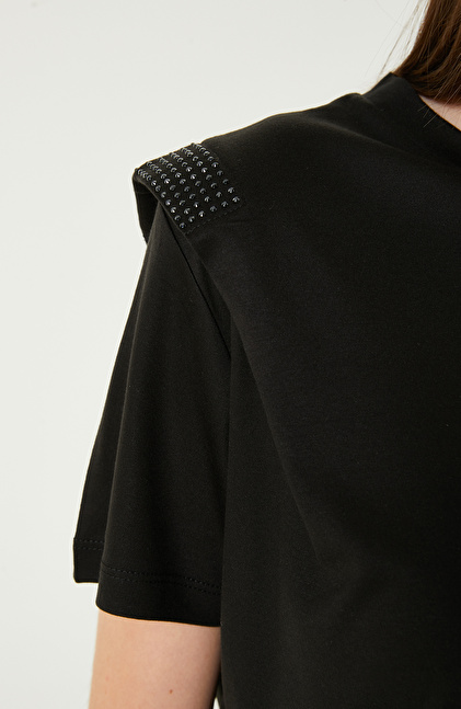 Siyah Omuz Detaylı Tshırt