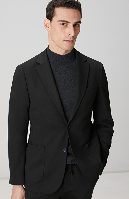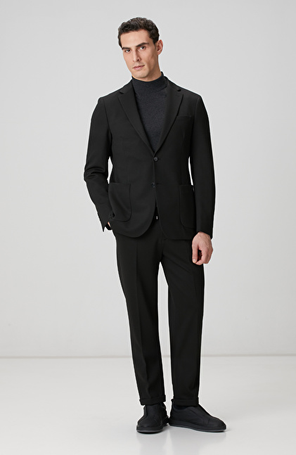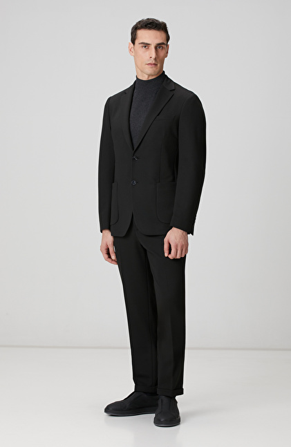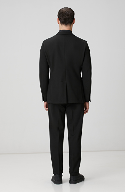 Slim Fit; Örme Takım Elbise; Ceket: Mono Yaka; Uzun Kol; Pantolon: Normal Bel; Duble Paça; Cepli