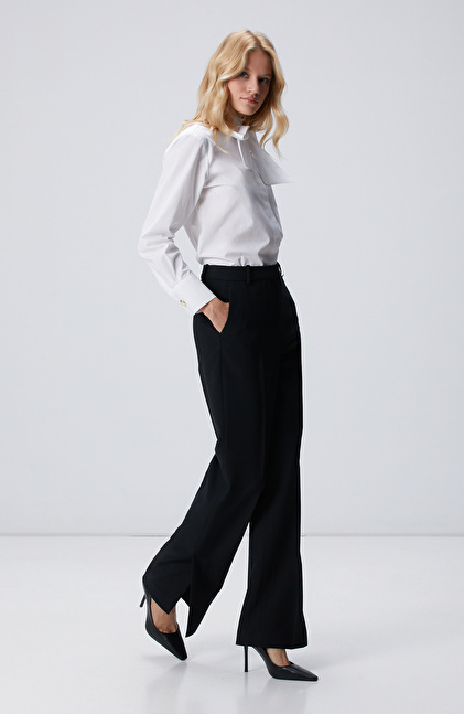 NETWORK Smart Casual Siyah Paçası Yırtmaçlı Pantolon
