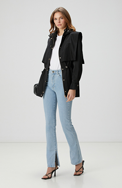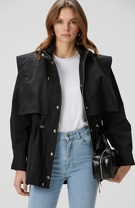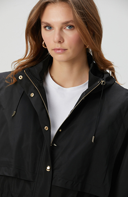Regular Fit; Kapüşon Yaka; Uzun Kol Pardösü; Yan Cepli