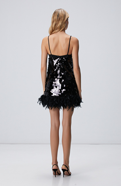 Siyah Payetli Mini Abiye Elbise