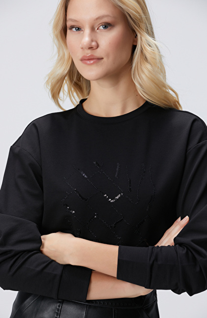Siyah Payetli Sweatshirt