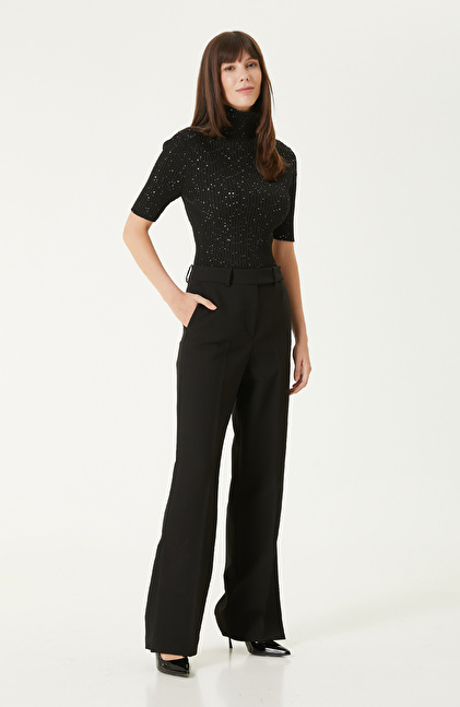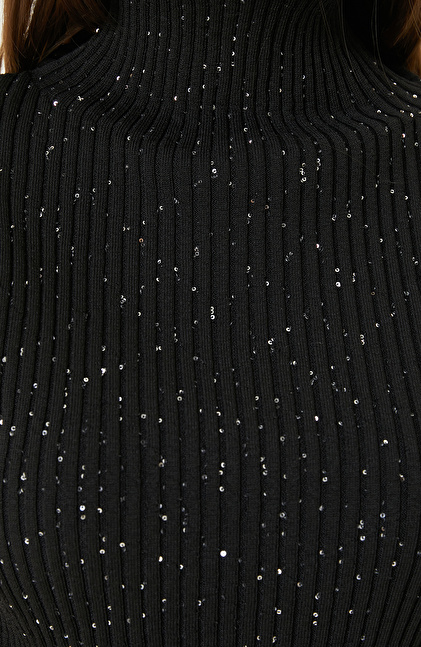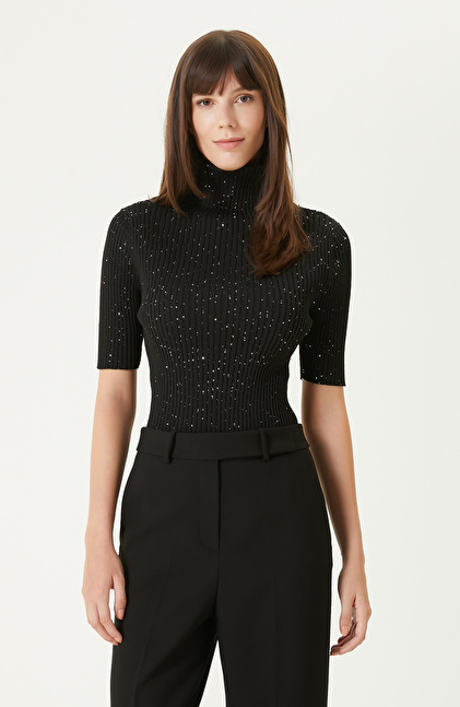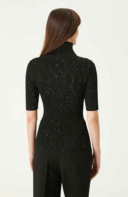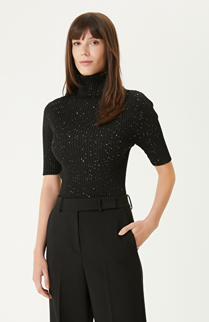 Regular Fit; Balıkçı Yaka; Kısa Kol; Payetli Kazak