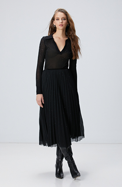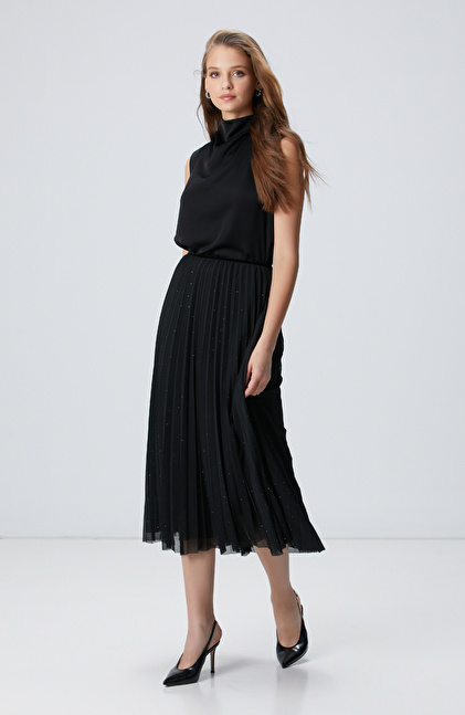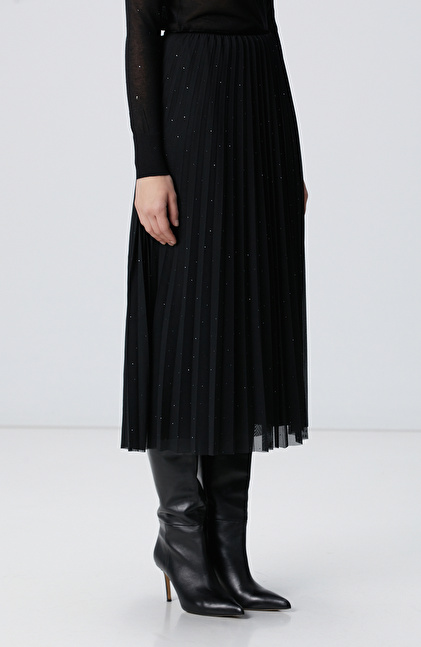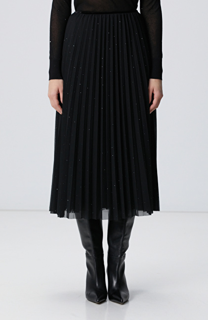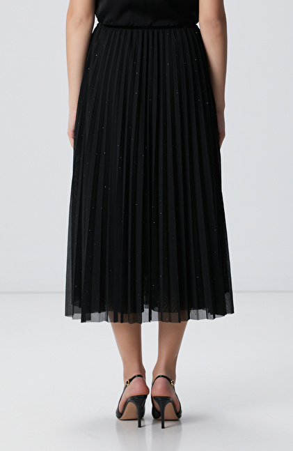 NETWORK Smart Casual Siyah Payetli Tül Midi Etek