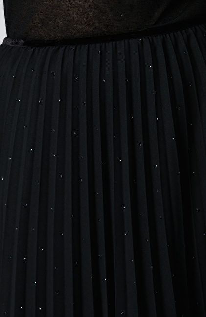 Siyah Payetli Tül Midi Etek