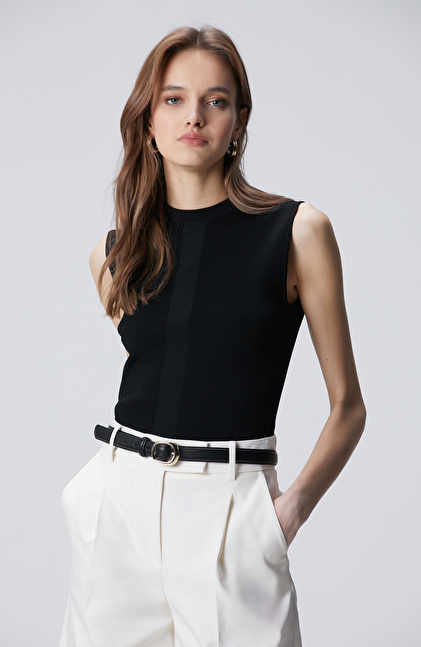 Basic Fit; Bisiklet Yaka; Kolsuz; Ribana Örgü; Önü Jakarlı Triko