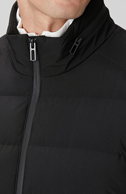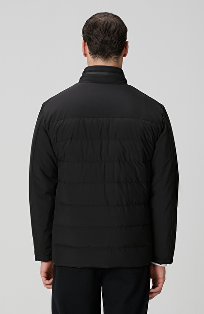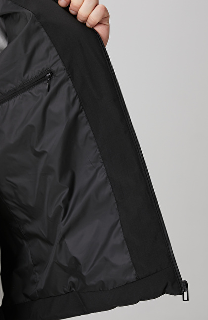 Siyah Su Geçirmez Fermuarlı Casual Kaban