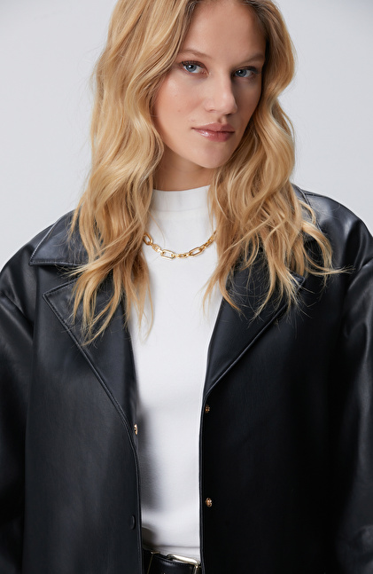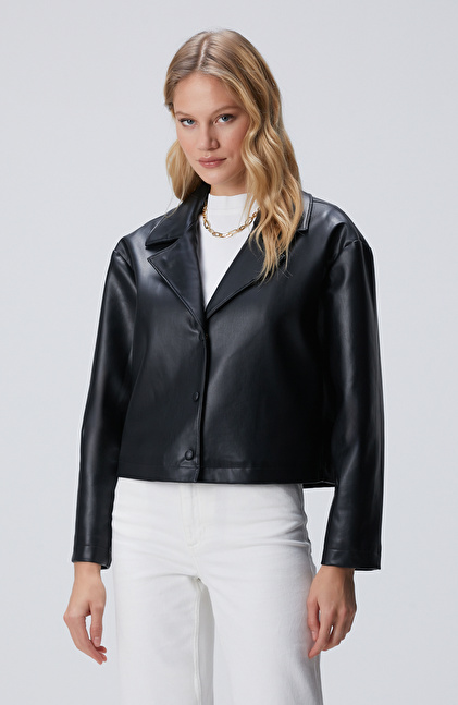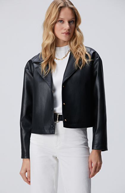 Siyah Suni Deri Ceket