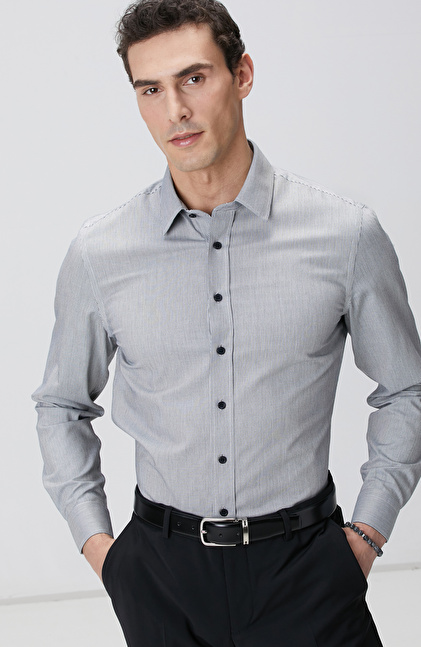Siyah Super Non-Iron Çizgili Gömlek