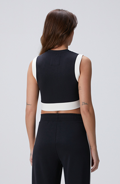 Slim Fit; Bisiklet Yaka; Kolsuz; Crop Örme T-Shirt; Modal Karışımlı; Garnili; 1 Beden Büyük Tercih Edilebilir.