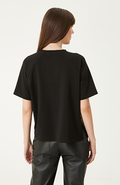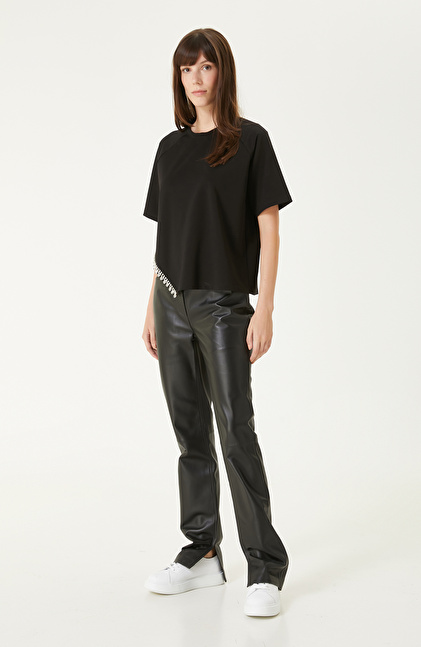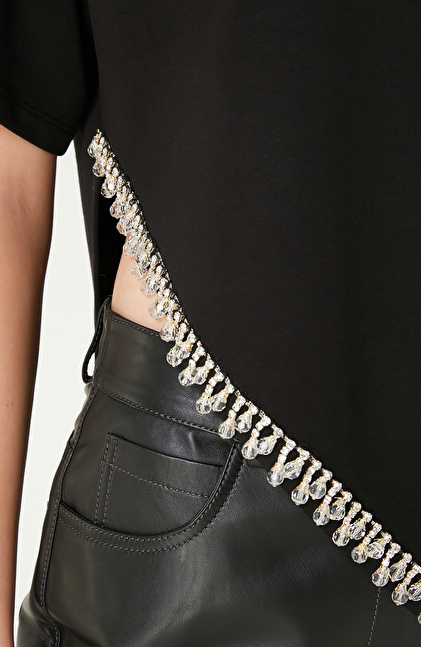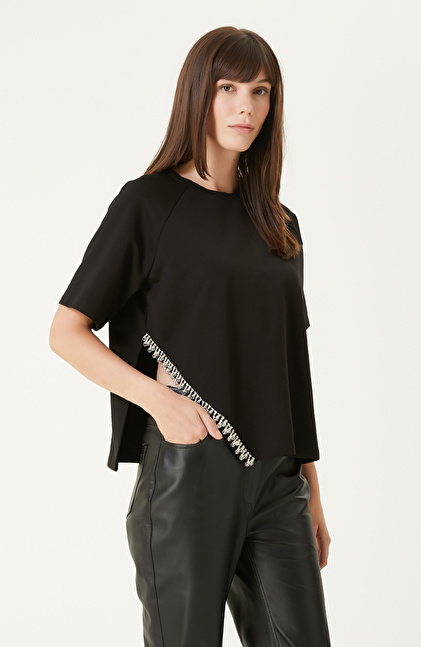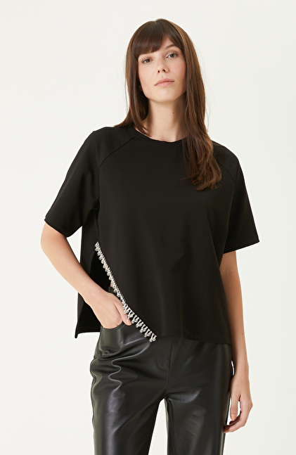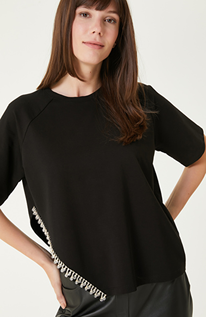 Siyah Taş Şerit Aksesuarlı Tshırt