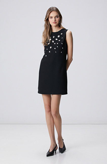 Regular Fit; Bisiklet Yaka; Kolsuz; Mini; Abiye Elbise; Taşlı; Cepli