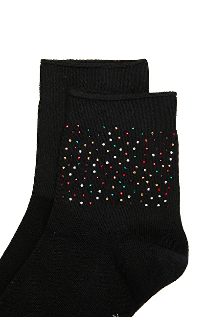 Siyah Taşlı Kadın Çorap