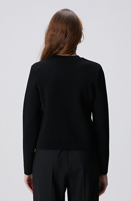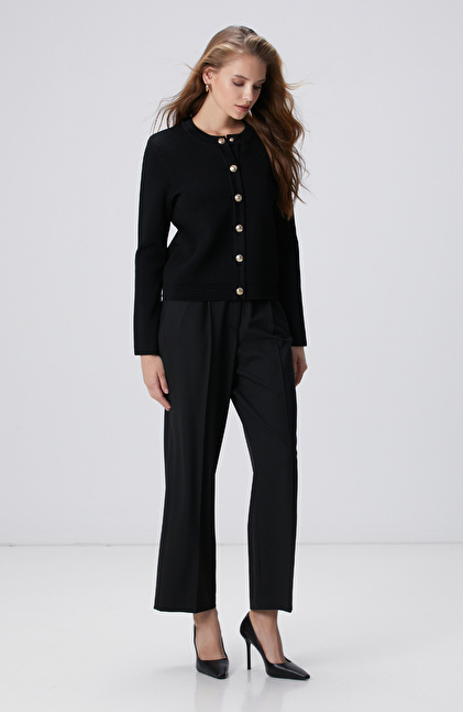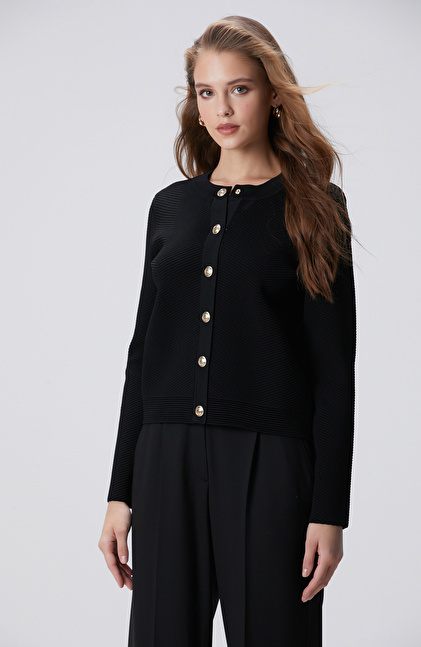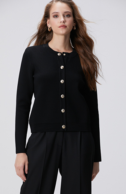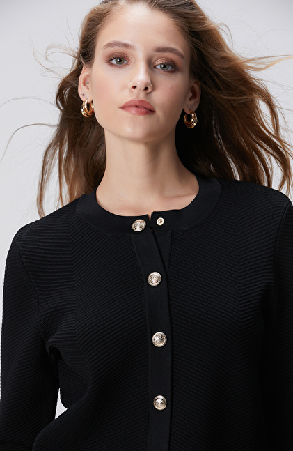 Regular Fit; Bisiklet Yaka; Uzun Kol; Triko Ceket; Çıtçıt Kapatmalı