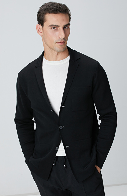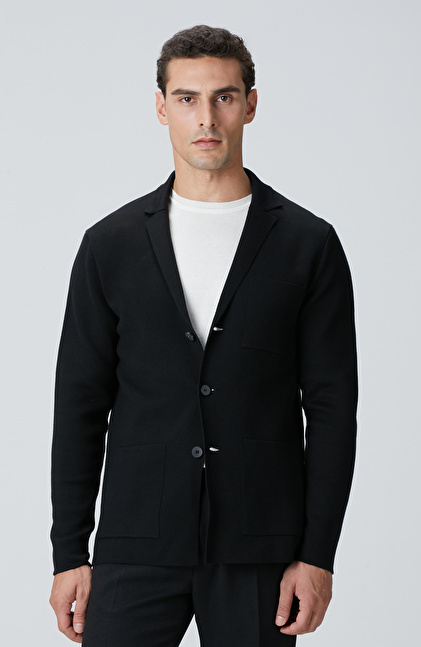 Slim Fit; Mono Yaka; Triko Ceket; Uzun Kol; Cepli