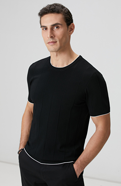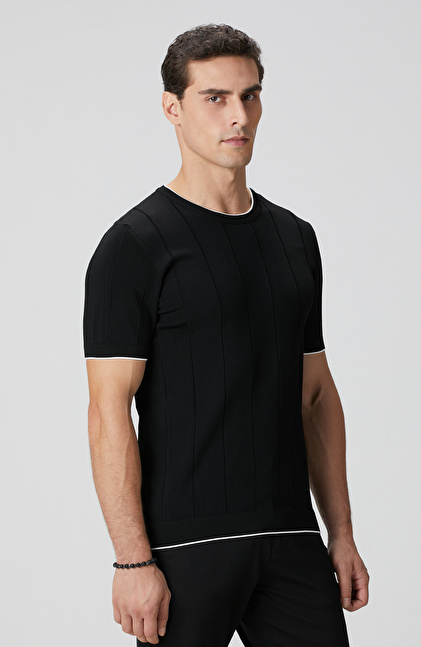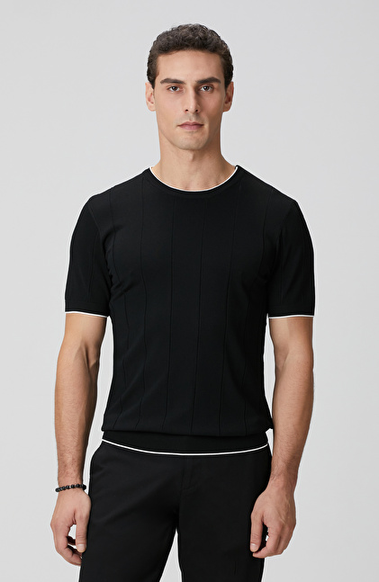 Slim Fit; Bisiklet Yaka; Kısa Kol; Ribli Triko Kazak